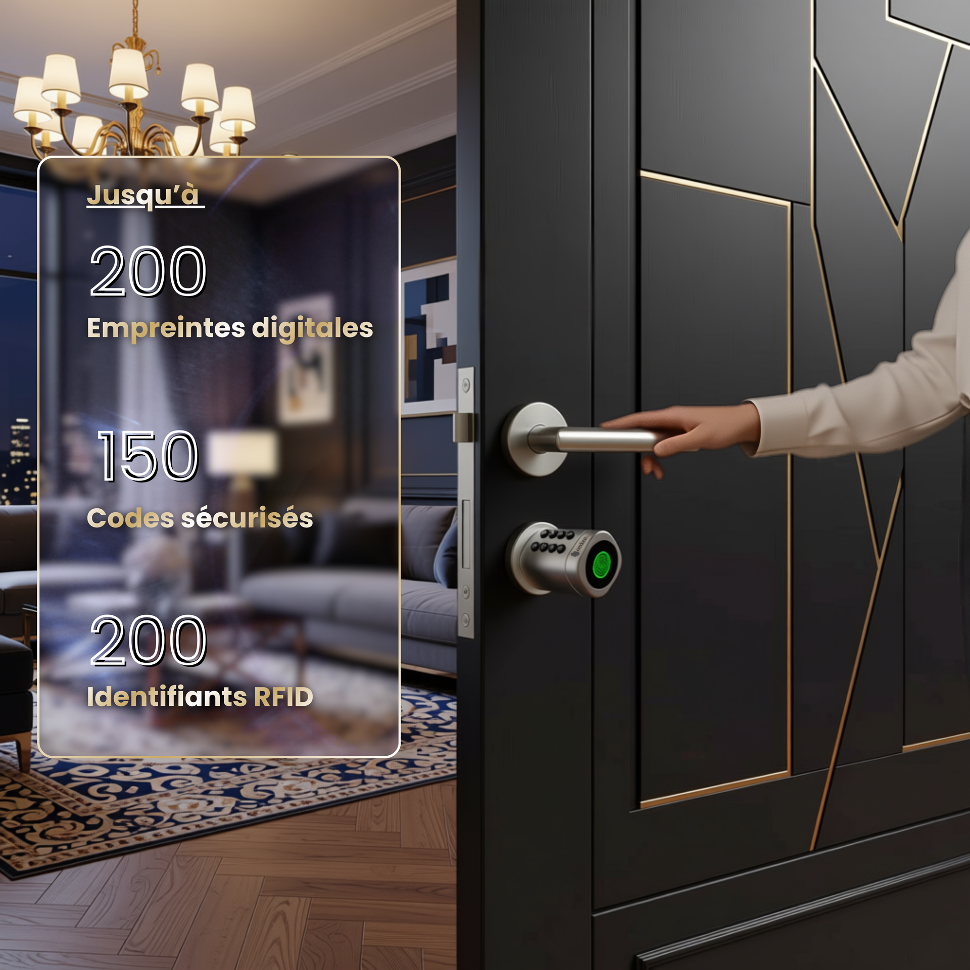 - Empreinte digitale – Jusqu’à 200 empreintes enregistrables pour un accès sécurisé et rapide.