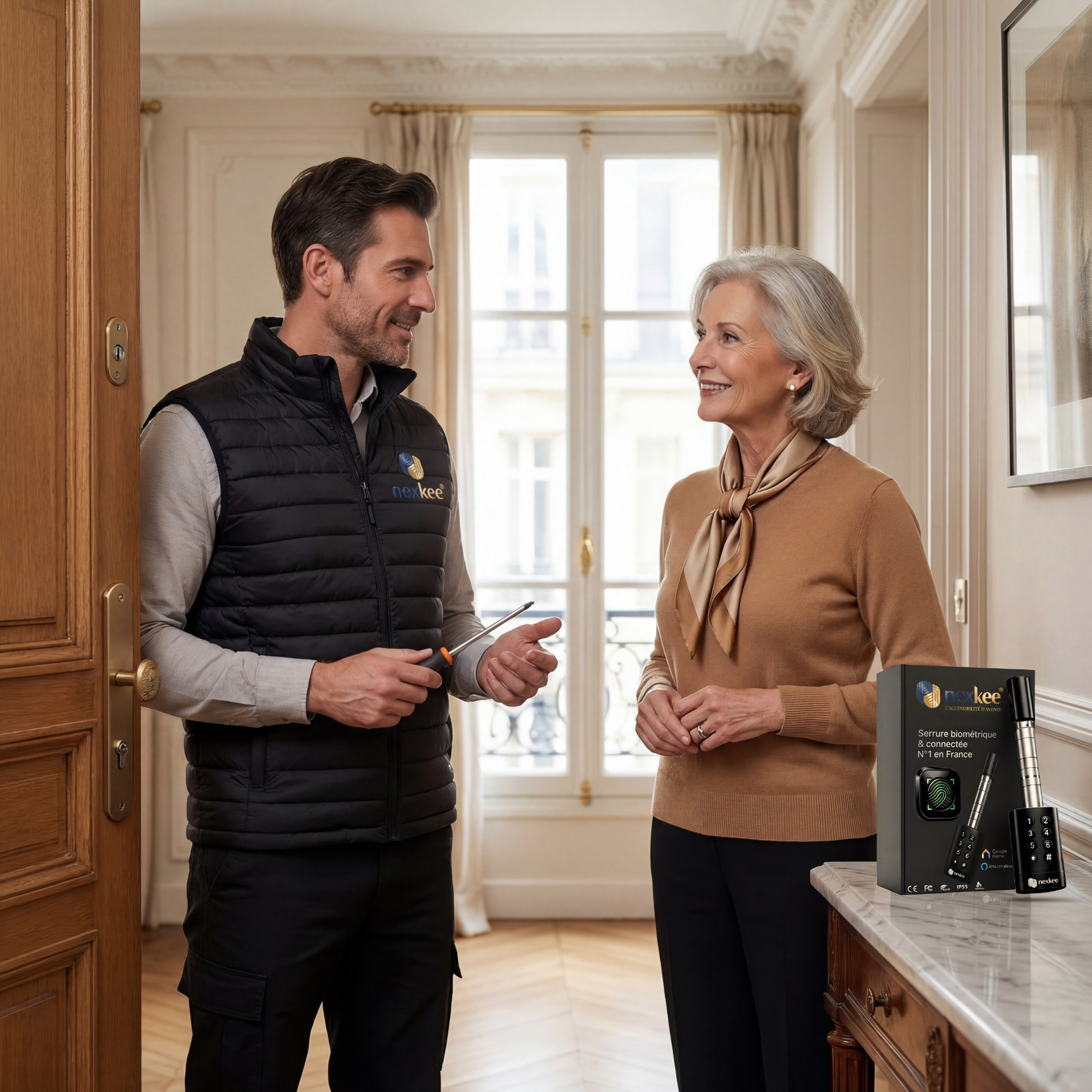 Oui. Nexkee fournit un service complet en Île-de-France et dans toute la France. Son équipe d’experts techniques installe la serrure, analyse l’épaisseur de la porte, retire l’ancien cylindre sans travaux lourds, sans perçage et sans câblage, configure les codes et profils utilisateurs, et accompagne la prise en main de l’application. Vous bénéficiez ainsi d’une solution clé en main prête pour vos arrivées autonomes Airbnb.